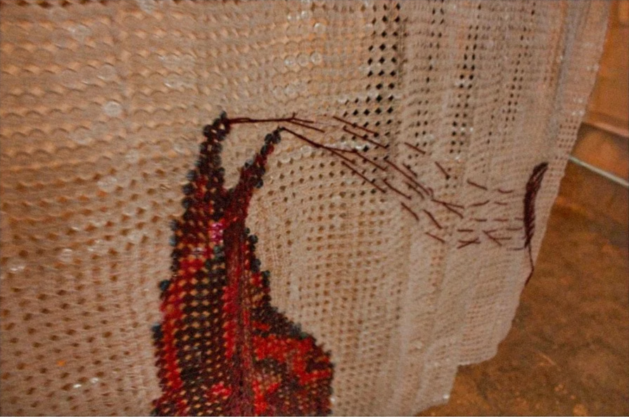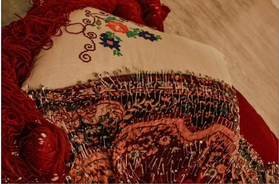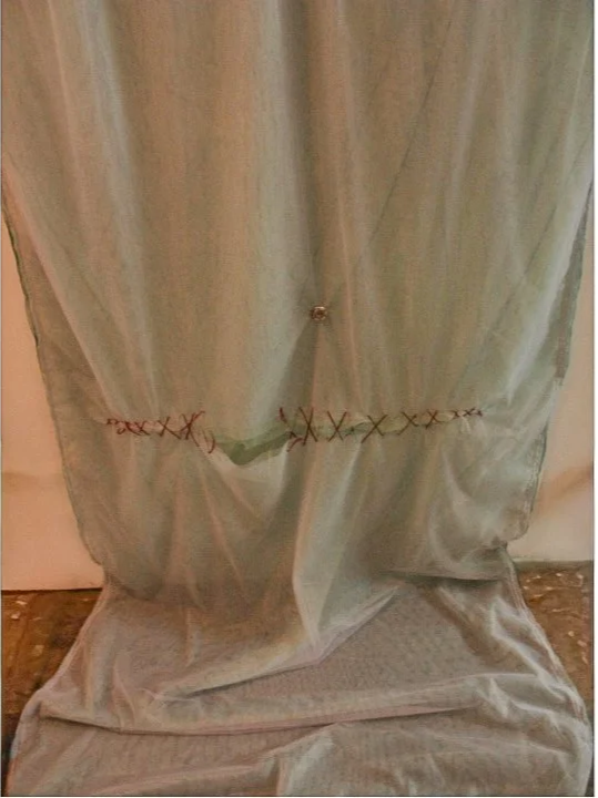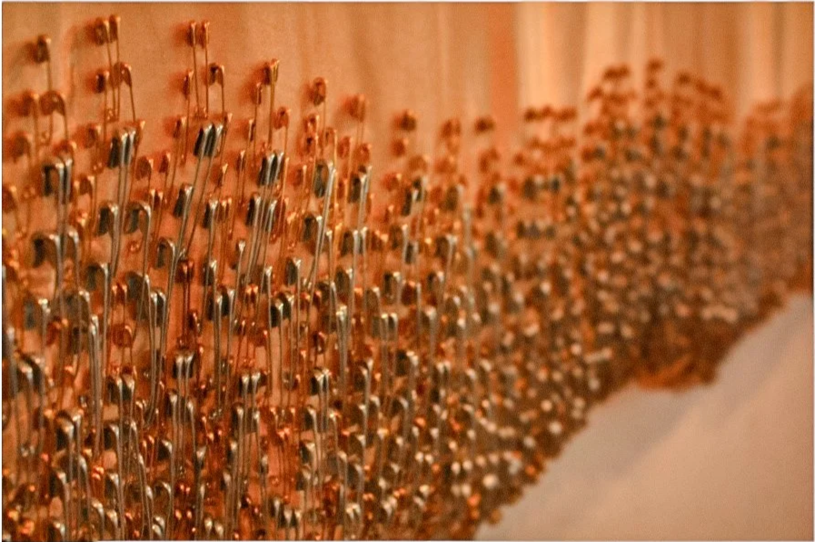 In the Parda series, I was drawn to household textiles and women’s daily rituals as sites of secrecy, desire, and quiet endurance. Fabric became skin, memory, and witness. With pins, safety pins, custom hooks, and zips, I pierced, fastened, and reassembled surfaces as gestures of both violence and care. Each puncture carried the weight of inherited silence, discipline, and longing.